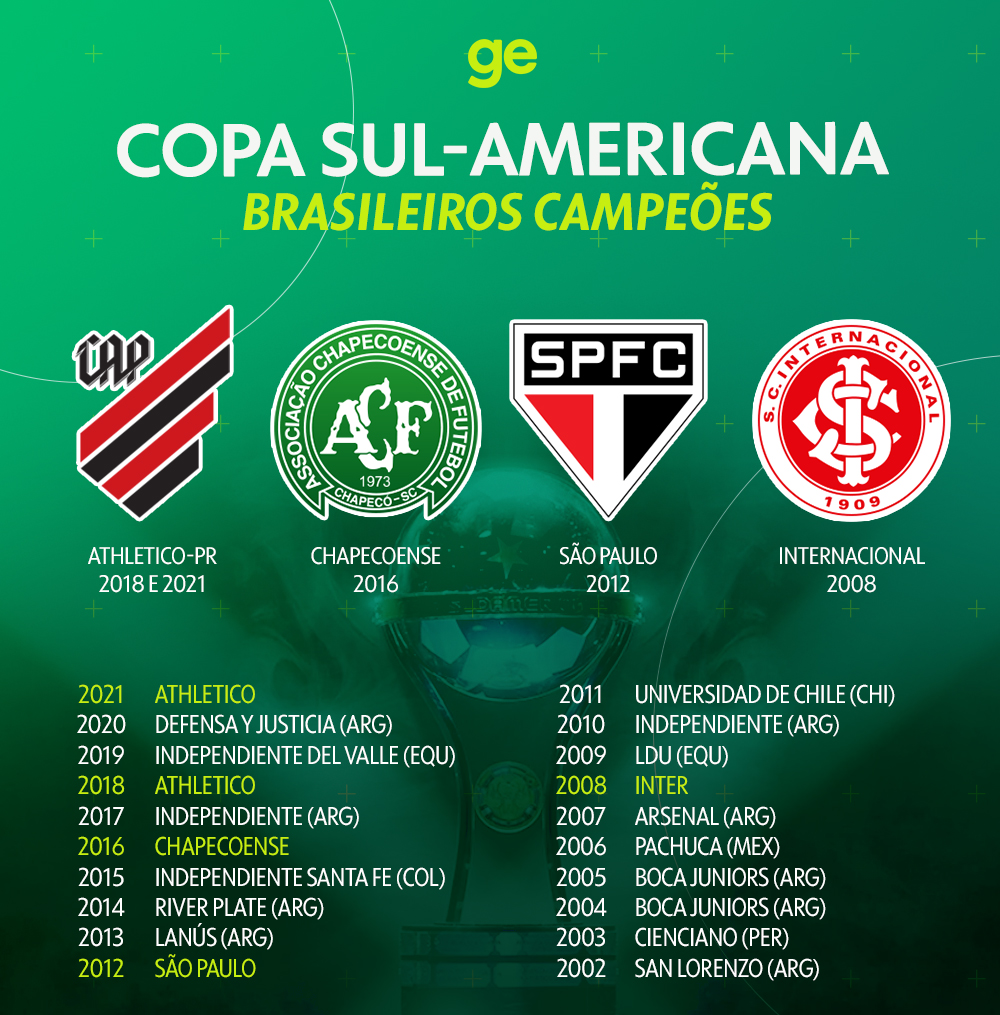 Clubes como Internacional (2008), São Paulo (2012), Chapecoense (2016), Athletico Paranaense (2018 e 2021) e Red Bull Bragantino (2021) conquistaram títulos importantes, mostrando a competitividade do futebol brasileiro mesmo fora da Libertadores.